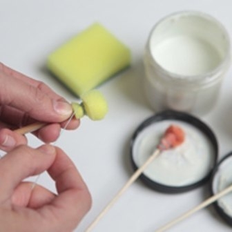3. Разрежьте губку на три части. Укрепите части губки на рукоятках кисточек.