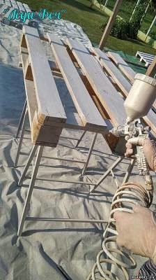 2. Грунтуем деревянные поддоны. Используем кисти, или краскораспылитель