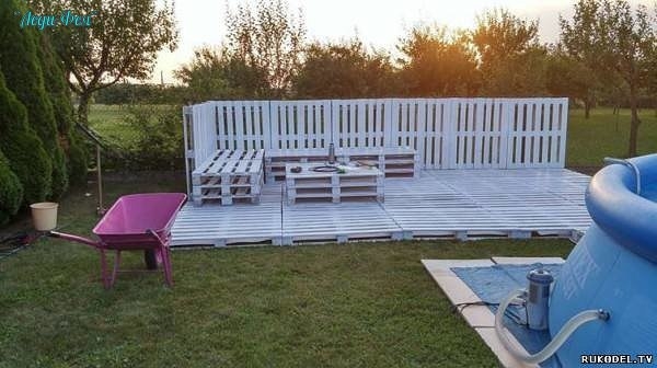 13. Вот такое замечательное патио на даче мы сделали своими руками, из старых поддонов.