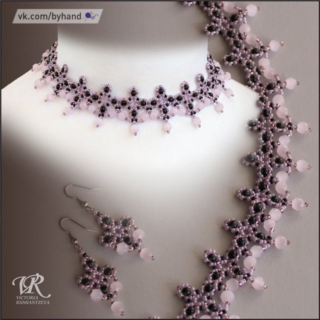 Бисер для начинающих: несложный и красивый узор Можно сделать браслет или колье. А еще лучше комплект.