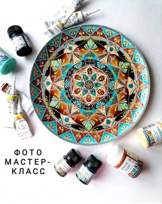 Роспись "Ловца солнца" Материалы: витражные краски, витражный контур, стеклянная заготовка, кисть, разбавитель, эскиз Процесс: Представляю вашему вниманию, друзья, мастер-класс по росписи вот такого нарядного и узорного Ловца солнца. При его создании мы будем совмещать витражную и точечную роспись. Мастер-класс рассчитан на людей, которые уже имеют небольшой опыт в данном виде творчества, поскольку работа требует большой аккуратности, прорисовке мелких деталей и т.д. Для начала несколько слов, что тако...