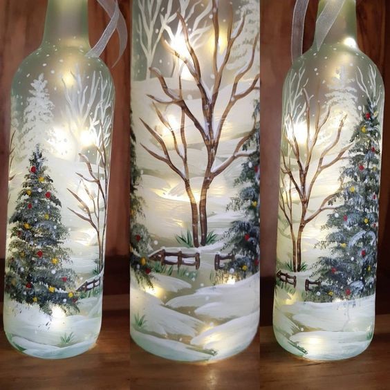 Роспись бутылки акриловыми красками Материалы: акриловые краски, бутылка стеклянная, кисть, спирт, тряпочка Процесс: Чтобы снять этикетку с бутылки, замачиваем её в воде, затем сдираем этикетку. Для удаления клея я использовала растворитель для автомобильных эмалей, т.к. ничего не было под рукой. Он прекрасно справился с этой задачей. Можно взять что-то специально для клея. Надо тщательно удалить клей, поверхность должна быть абсолютно чистой. Вытираем поверхность бутылки насухо, обезжириваем спиртом. Э...