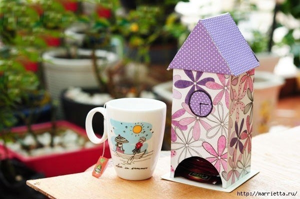Домик из картона для хранения чайных пакетиков. Приятного чаепития!