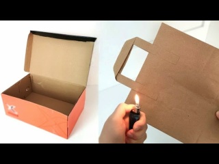 Прекрасная корзина для мусора из обувной коробки и бумажного пакета своими руками