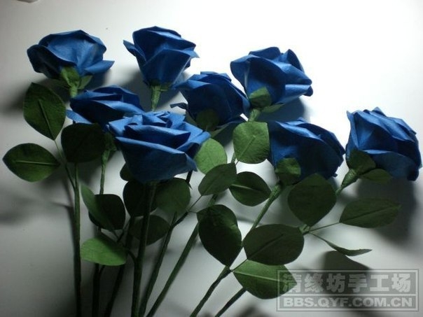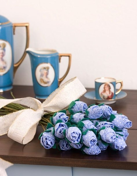 Цветы из ткани. Голубые розы. Мастер-класс. Выкройка.