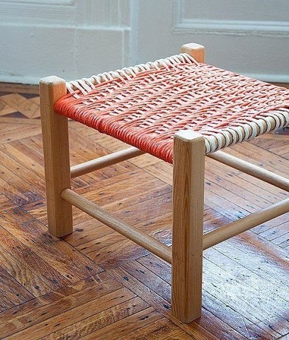 Табурет с плетеным сиденьем — узор «шеврон»