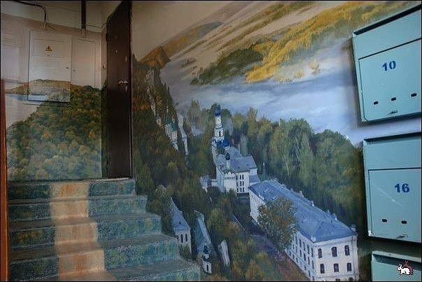 Художник Борис Черниченко расписал стены подъезда 8-этажного дома в Астрахани