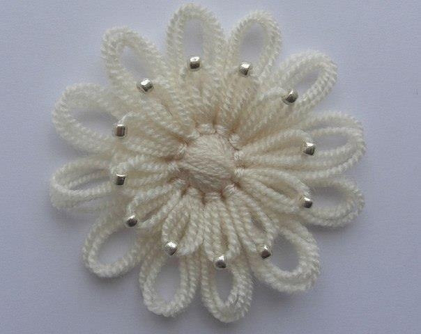 Цветочки из ниток, цветы на луме и ее заменителе из картона