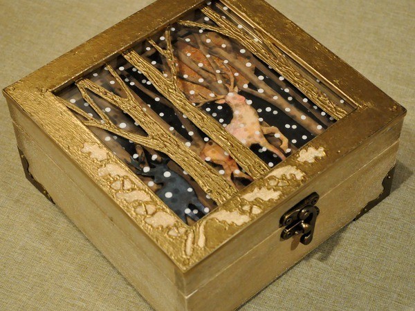 Декор шкатулки с двойной крышкой "Золотой волшебный лес": часть 1