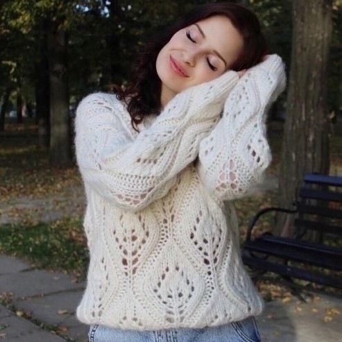 Ажурный узор спицами для вязания палантина, бактуса, плечевых изделий