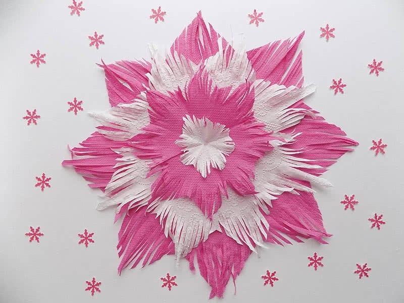 Как сделать пушистую снежинку из салфеток. Сохраняйте в копилку новогодних идей.
