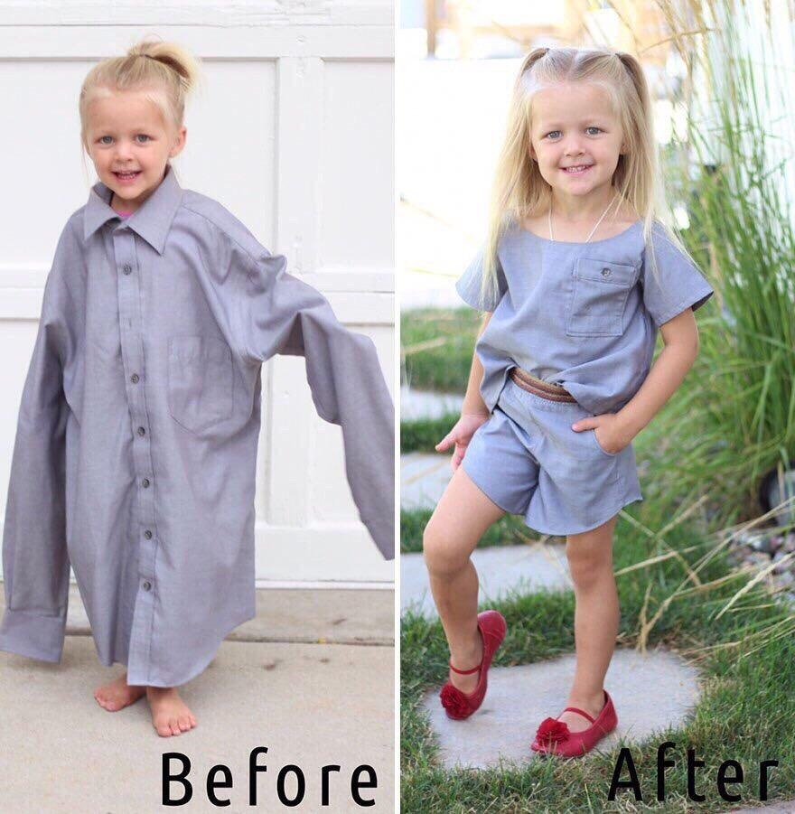 Креативная мама делает крутую одежду для своей дочки из старых папиных рубашек.