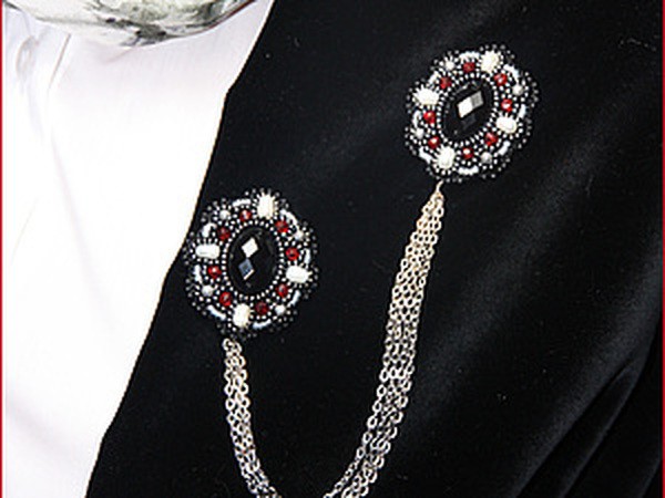 Двойная брошь "Тайны Мадридского двора": часть 2 Двойная брошь "Тайны Мадридского двора": часть 2 Автор Наталья Новикова 7. По отмеченным ручкой линиям с 4-х сторон пришиваем 4 штучки речного жемчуга, нитку пропускаем не менее 2-х раз. 8. Жемчуг также обшиваем гематитовым бисером №11. 9. Берем красные граненные бусины и пришиваем с 2-х сторон от жемчужины, и также обшиваем каждую бусинку гематитовым бисером. 10. В промежутке между обшитыми красными бусинками пришиваем серую жемчужинку, а под ней в маленькой дырочке не забываем пришить 1 бисеринку се... Добавить в закладкиНазначить теги Двойная брошь "Тайны Мадридского двора": часть 1 Двойная брошь "Тайны Мадридского двора": часть 1 Автор Наталья Новикова Для работы нам потребуются: небольшой кусочек фетра для вышивки, соответствующие кусочки натуральной кожи или заменителя, круглозубцы, кусачки, линейка, ручка, клей момент универсальный, нитки черные и белые (лавсановые или капроновые), 2 акриловые стразы (можно и стразы Сваровски), тонкие иголки для бисера, 2 гибких пина, цепочка с прочными звеньями около 70 см, 2 маленькие застежки для броши, японский бисер Тоhо № 15 матового черно... Добавить в закладкиНазначить теги Делаем брошь-цветок "Черная георгина": часть 3 Делаем брошь-цветок "Черная георгина": часть 3 Автор Наталья Новикова 21. После чего пришиваем застежку для броши и приклеиваем бумагу, чтобы не чувствовались узелки. 22. В кусочке кожи делаем дырочки для застежки броши и аккуратно приклеиваем к фетру. 23. После чего вырезаем по контуру фетра. 24. Теперь можно приступить к обработке края нашего листика. Оставим внизу (в месте начала обработки) мононить длиной 20 см и начинаем обшивать по одной бисеринке 15 размера. 25. Готово 26. На 20-м см нить, ко... Добавить в закладкиНазначить теги Делаем брошь-цветок "Черная георгина": часть 2 Делаем брошь-цветок "Черная георгина": часть 2 Автор Наталья Новикова 11. Для объемной вышивке нам надо вырезать маленькие кусочки фетра согласно формы нашего листа. 12. Аккуратно приклеиваем фетр на фетр. 13. Набираем бисер-рубку 15 размера и прошиваем на всю длину нашей наклейки, прошиваем не менее 2-х раз. 14. Проделаем тоже самое с 2-х сторон и получим вот такой красивый листочек в технике объемной вышивки. 15. После чего мы его приклеиваем на кожу и даем немного просохнуть, потом аккуратно вырез... Добавить в закладкиНазначить теги Делаем брошь-цветок "Черная георгина": часть 1 Делаем брошь-цветок "Черная георгина": часть 1 Автор Наталья Новикова Все что нам нужно: бисер 11 и 15 размера, в том числе и бисер-рубку 15 размера. Граненные бусины-рондели 8 мм — 8 шт, бусина круглая 8 мм — 1 шт, стразы в цапах — 16 шт, клей, фетр, ножницы, иголки, мононить, капроновая нить, кусочек натуральной кожи, застежка для броши. 1. Из фетра вырезаем круг диаметром 3,5 см и наносим на него оси, после чего в центр пришиваем круглую бусину. Работаем мононитью. 2. После чего ст... Добавить в закладкиНазначить теги Вышиваем искрящуюся брошь "Пингвин": часть 3 Вышиваем искрящуюся брошь "Пингвин": часть 3 Автор Светлана Голуб. Продолжаем пришивать стразовые ленты. Если остаются пустые пространства, в которые может поместиться одна страза, то можно отрезать от ленты одну стразу, продеть ее на нить, пришить к полотну, но при этом обязательно закрепить с четырех сторон за лапки. Когда стразовая лента делает поворот, например, как на г