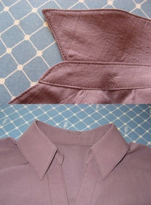 Обработка воротника мужской рубашки с кулисками для косточек Кончики получаются острыми и стромкими.