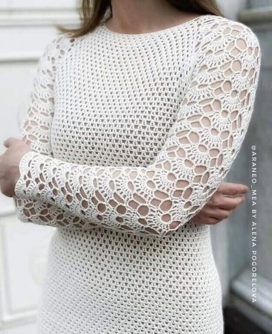 Красивая и аккуратная отделка топа Можно связать такой вязкой весь шарф.