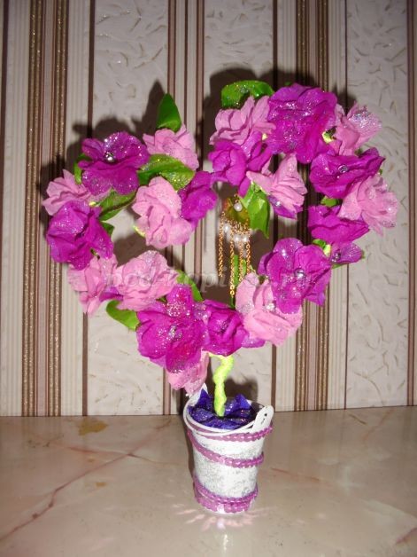 Как сделать дерево любви из бисера своими руками: мастер-класс, часть 4 Как сделать дерево любви из бисера своими руками: мастер-класс, часть 4 Авторы Когадеев Сергей, Окунева Раиса. Сборка веточек Делаем в соответствии с фотографиями мастер-класса ниже. Работа готова. Часть 1 https://www.diyideas.ru/51882-kak-sdelat-derevo-lyubvi-iz-bisera-svoimi-rukami-master-klass-chast-1.html Часть 2 https://www.diyideas.ru/51888-kak-sdelat-derevo-lyubvi-iz-bisera-svoimi-rukami-master-klass-chast-2.html Часть 3 https://www.diyideas.ru/51894-... Добавить в закладкиНазначить теги Как сделать дерево любви из бисера своими руками: мастер-класс, часть 3 Как сделать дерево любви из бисера своими руками: мастер-класс, часть 3 Авторы Когадеев Сергей, Окунева Раиса. Тычинки Отмеряем 30 см. проволоки. Набираем 7 бисеринок желтого цвета Оставляем одну бисеринку, через остальные шесть проходим повторно. И так несколько раз Пестик делаем из более крупного бисера и более жесткой проволоки Вокруг пестика обматываем тычинки, затем поочередно лепестки. Часть 1 https://www.diyideas.ru/51882-kak-sdelat-derevo-lyubvi-iz-bisera-svoimi-rukami-master-klass-cha... Добавить в закладкиНазначить теги Как сделать дерево любви из бисера своими руками: мастер-класс, часть 2 Как сделать дерево любви из бисера своими руками: мастер-класс, часть 2 Авторы Когадеев Сергей, Окунева Раиса. Лепестки Отмеряем 35 см. проволоки диаметром 0,3 мм. делаем петлю, длиной 3 см, один коней проволоки 8 см. другой 21 см. На каждый конец проволоки нанизываем по 9 бисеринок, скручиваем, делаем 2-3 оборота. На длинный конец проволоки нанизываем около 13 бисеринок количество может меняться, возвращаемся к петле скручиваем. Нанизываем еще около 13 бисеринок, скручиваем, возвращаемся к короткому... Добавить в закладкиНазначить теги Как сделать дерево любви из бисера своими руками: мастер-класс, часть 1 Как сделать дерево любви из бисера своими руками: мастер-класс, часть 1 Авторы Когадеев Сергей, Окунева Раиса. Листья Отмеряем 40 см. проволоки, набираем 5 бисеринок, скручиваем.Так чтобы один конец проволоки был немного длиннее.( 10см и 30 см.) Набираем на длинный конец проволоки 13 бисеринок, проходим вокруг первых пяти бисеринок и скручиваем петлю. Повторяем еще 3 раза Розочки Отмеряем 45 см. проволоки. набираем 3 стекляруса, скручиваем в форме треугольника, так чтобы один конец был 9 см., второй... Добавить в закладкиНазначить теги Топиарий "Дерево любви": часть 3 Топиарий "Дерево любви": часть 3 Автор: Чернова Алена Сергеевна. Обматываем дополнительно его еще раз(можно насадить на клей) и продвигаемся дальше.Старайтесь не делать больших разбежек между соединением ленты с лентой-лучше делать в "нахлест". Продвигаемся дальше добавляя на пути обматывания то зеленые листочки то цветы разных цветов.Каждый раз соеденяя лишь по одному элементу. После окончания одной стороны,аналогично поступаем с другой начиная действие со ствола дерева. Шаг 5. Декорирование ведерка ... Добавить в закладкиНазначить теги Топиарий "Дерево любви": часть 2 Топиарий "Дерево любви": часть 2 Автор: Чернова Алена Сергеевна. Не останавливаемся и продолжаем дальше, пока вам будет не достаточно ( не делаете много-будет смотрется как каша, не делаете мало- слишком "бедный" вид- примерно 12-15 лепестков) 2 вариант цветков На стержень с бусинкой приклеиваем всего 2 лепестка На кроме слегка склеиваем их между собой Получаем закрытый цветочек Берем ножницы и отрезаем проволоку на расстояние 1,5 - 2 см от цветка Аналогично прод
