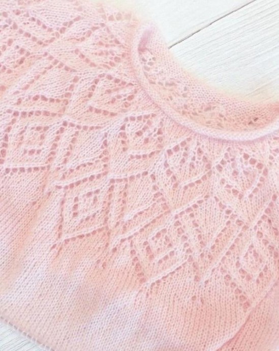 Джемпер с круглой кокеткой спицами Его также можно сделать с длинным рукавом.