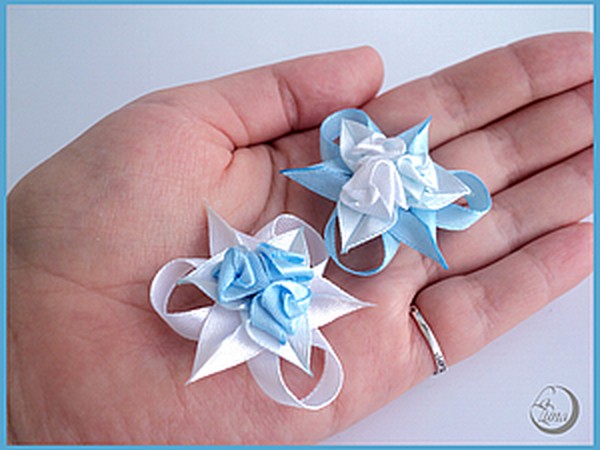 Цветок из шелка своими руками: часть 1 Автор: Бородина Оксана Викторовна. Шаблоны могут быть разных размеров. Это зависит от того, какой бант вы хотите получить. Если вы хотите бант получить пышным, то достаточно будет основы диаметром 5,5 см. Складываем ткань в два слоя, прикладываем шаблон так, чтобы волнистая сторона смотрела в сторону сгиба. Разогретым выжигателем обводим шаблон, получается, что мы одновременно вырезаем и спаяваем края лепестков. Получится двойной лепесток. Верхний слой пальц...