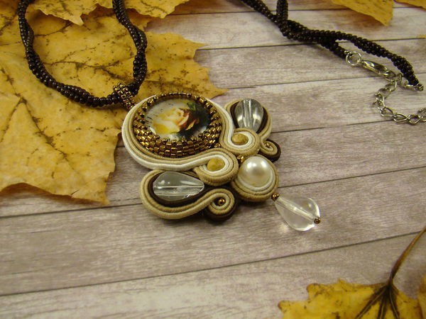Кулон "Цветы полуночи" Кулон "Цветы полуночи" Можно использовать бисер любых цветов темных оттенков. Добавить в закладкиНазначить теги Создаем нежный кулон "English rose": часть 5 Создаем нежный кулон "English rose": часть 5 На концах делаем петельки из пяти бисерин №15, присоединяя замочек. Замок можно использовать любой, в этот раз я взяла карабин. Наш кулон готов Часть 1 https://www.diyideas.ru/49936-sozdaem-nezhnyi-kulon-english-rose-chast-1.html Часть 2 https://www.diyideas.ru/49942-sozdaem-nezhnyi-kulon-english-rose-chast-2.html Часть 3 https://www.diyideas.ru/49948-sozdaem-nezhnyi-kulon-english-rose-chast-3.html Часть 4 https://www.diyideas.ru/49954-sozdaem-... Добавить в закладкиНазначить теги Создаем нежный кулон "English rose": часть 4 Создаем нежный кулон "English rose": часть 4 Приклеиваем картонную выкройку на кожу (стараемся поэкономнее), вырезаем и обшиваем бисером №15 американским способом. Бисерины при этом ложатся плашмя, между ними образуются перетяжки, это нужно для дальнейшего аккуратного соединения с кулоном. Приклеиваем изнанку к кулону и пришиваем ее за те самые перетяжки между бисеринами. С лица игла выходит между слоями сутажа. Плетем витой шнур ндебеле на две бисерины длиной 40 см из круглого бисера №11. Часть 1 http... Добавить в закладкиНазначить теги Создаем нежный кулон "English rose": часть 3 Создаем нежный кулон "English rose": часть 3 Пришиваем подвеску. Для этого я использую капроновую нить (если пришить мононитью, подвеска будет торчать). Плетем петельку ндебеле на две бисерины длиной 2 см. Теперь черед изнанки. Обводим кулон на бумаге, вырезаем на пару миллиметров вглубь от линии. Прикладываем выкройку к кулону, проверяем, подрезаем, если нужно. Обводим выкройку на тонком картоне и вырезаем. Почему сразу не использовать картон, не возясь с бумагой? Потому что бумажную выкройку можно со... Добавить в закладкиНазначить теги Создаем нежный кулон "English rose": часть 2 Создаем нежный кулон "English rose": часть 2 Делаем симметричный завиток с другой стороны. Между завитками вшиваем круглую бисерину №11. Берем три отрезка сутажа длиной примерно 6 см, огибаем ими жемчужину 8 мм, прошиваем. Пришиваем ее снизу кабошона. Над жемчужиной пришиваем бисерину №11. Теперь займемся боковыми элементами. Берем три отрезка сутажа длиной примерно 10 см, вшиваем бусину-каплю. Концы сутажа соединяем у узкого конца бусины. С одной стороны формируем завиток, вшивая круглую бисерину №1... Добавить в закладкиНазначить теги Создаем нежный кулон "English rose": часть 1 Создаем нежный кулон "English rose": часть 1 Предлагаю вам попробовать создать нежный кулон с чайными розами в осенней цветовой гамме. Стиль «английская роза» — это мягкая цветовая палитра в макияже и одежде. Основные правила стиля — пастельные тона, винтаж и, конечно же, розы! Этот стиль зародился в Британии в те времена, когда Джейн Остин и сестры Бронте писали свои гениальные романы. Их героини были истинными английскими розами: предпочитали скромные наряды, были начитаны, образованы, с... Добавить в закладкиНазначить теги Подвеска из проволоки и камней Подвеска из проволоки и камней Проволоку можно купить в строительных магазинах или через интернет. Добавить в закладкиНазначить теги Бисерные серьги или кулон Бисерные серьги или кулон С расширением внизу они немного напоминают веер. Добавить в закладкиНазначить теги Бусина "Baroca" в украшениях: мастер-класс Бусина "Baroca" в украшениях: мастер-класс Она может быть кулоном, брелком, серьгами..... Добавить в заклад