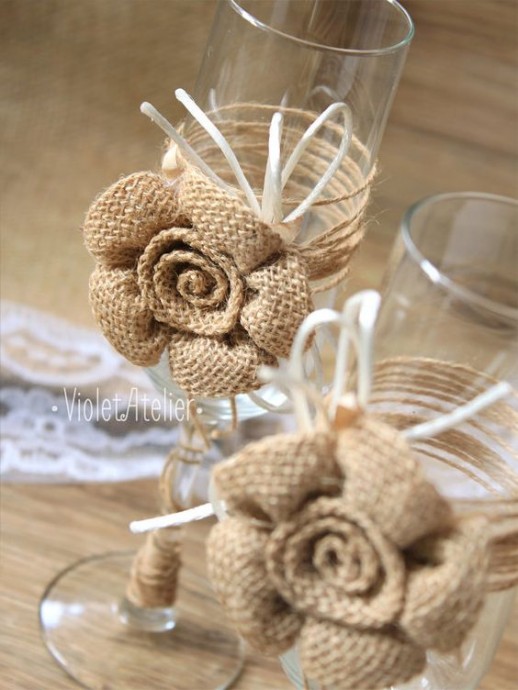 Миниатюрные цветочки из мешковины впишутся почти в любой интерьер. Это экологичные решения в творчестве.