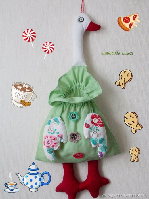 Чемодан для малышки Чемодан для малышки В нем можно носить игрушки и вещи для кукол. Добавить в закладкиНазначить теги Лошадка на подарок Лошадка на подарок Лучшего брелка на ключи в этом году не придумать. Добавить в закладкиНазначить теги Деним, жаккард, вискоза и прочие типы тканей Деним, жаккард, вискоза и прочие типы тканей Читайте ниже подробное описание про каждую из них. Добавить в закладкиНазначить теги Шьем пакетницу-гуся: часть 2 Шьем пакетницу-гуся: часть 2 Автор Ольга Широкова. Затем шьем мешок. Прошиваем боковой шов, нижний шов (сразу вшиваем лапки). Сверху пришиваем ленту, вшивая голову. Отворачиваем ленту и пришиваем снизу двумя швами, чтобы было куда вставить резинку. Готовое изделие можно украсить дополнительно разными элементами. Мне пригодились цветочки из пуговиц. В результате получился такой гусь. Часть 1 https://www.diyideas.ru/51758-shem-paketnicu-gusja-chast-1.html Часть 2 https://www.diyideas.ru/517... Добавить в закладкиНазначить теги Шьем пакетницу-гуся: часть 1 Шьем пакетницу-гуся: часть 1 Автор Ольга Широкова. Подготовила для любителей шить всякие штучки мастер-класс, как сшить гуся-пакетницу. Вещь в хозяйстве нужная, позволяет хранить пакеты в одном месте. Выкройка для него выглядит так. Выкраиваем по 2 детали клюва и головы, по 4 детали крыльев и лапок. У меня была вышивка. В девичестве моя мама и тетя много всего вышивали, со временем белая ткань стала не такой белой и кое-где появились дырки, но вышивку выбрасывать было жалко, поэтому очень здор... Добавить в закладкиНазначить теги Вяжем пончики по рисункам Вяжем пончики по рисункам Автор Ольга Широкова. Для вязания использовала нитки ирис 100% хлопок, в две нити, чтобы вязание было более плотное и не вылезал синтепон. Вяжем цепочку из 20 воздушных петель, обвязываем столбиками без накидов 7 рядов. Глазурь вяжем аналогично, только набираем 23 воздушные петли и на 5 ряду начинаем вывязывать неровности ( чередуя 3-5 возд. петель, провязываем обратно), 6 ряд обвязываем все неровности столбиками без накида. Пришиваем к глазури посыпку. Сшиваем круги — ... Добавить в закладкиНазначить теги Наборный край с фестонами Наборный край с фестонами Хотите добавить изюминку в своё вязание? Попробуйте этот классный наборный край с фестонами Он выглядит очень эффектно и совсем не сложно вяжется. Вам понадобятся спицы и крючок. Сначала берём одну спицу и крючок, держим их вместе. На эту пару набираем петли обычным способом. Я решила, что для одного фестона десять петель будет в самый раз, но вы можете взять больше или меньше, как вам нравится. Дальше самое интересное: следующую петлю мы накидываем только на крючок. А потом п... Добавить в закладкиНазначить теги Исправление дефектов Исправление дефектов Забирайте в копилочки - бесценная информация. Добавить в закладкиНазначить теги Невероятные салфетки Невероятные салфетки Смотрите, какая красота Эти салфетки не просто украшение стола, а настоящие произведения искусства. Я сама вяжу, и когда вижу такое, просто дух захватывает. Иногда кажется, что такие вещи невозможно связать, но это не так. Главное — терпение и желание. А результат того стоит! Люди в комментариях тоже восхищаются, и это неудивительно. Говорят, что это шедевры, и я с ними полностью согласна. Кстати, многие спрашивают схемы. Это частый вопрос, когда видишь что-то особенн... Добавить в закладкиНазначить теги 