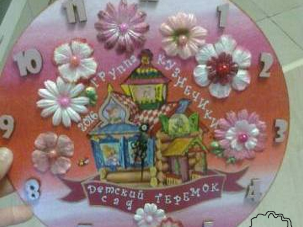 Создаем настенные часы "Теремок" В качестве фона используем салфетку: цветовую гамму и сочетания подбираем под картинку, либо под салфетку изменяем цвета некоторых деталей теремка в компьютерной программе. Заготовку — грунтуем, сушим, шкурим (традиционно и кто как привык). Салфетку расслаиваем, наклеиваем (при помощи файловой бумаги большого размера). Картинку вырезаем, отслаиваем нижний слой бумаги (скотч либо вода и наши волшебные пальчики). Лакируем, сушим и начинаем подбирать объемны...
