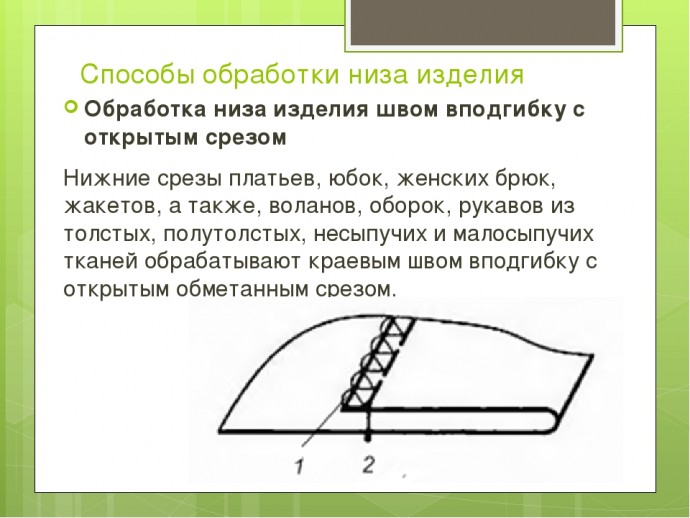 Способы обработки низа изделия столь разнообразны, чтобы к каждой ткани выбрать идеально подходящий к ней.