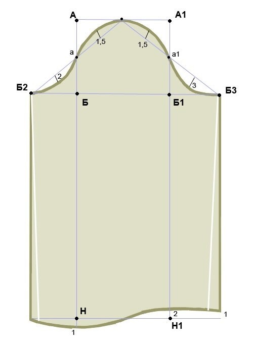 Оригинальная форма рукава На чертеже — пример преобразования базовой выкройки рукава.