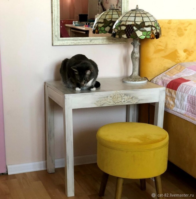 Прикроватный столик своими руками Просто склейте верхнюю часть из фанеры или досок и прикрутите ножки.
