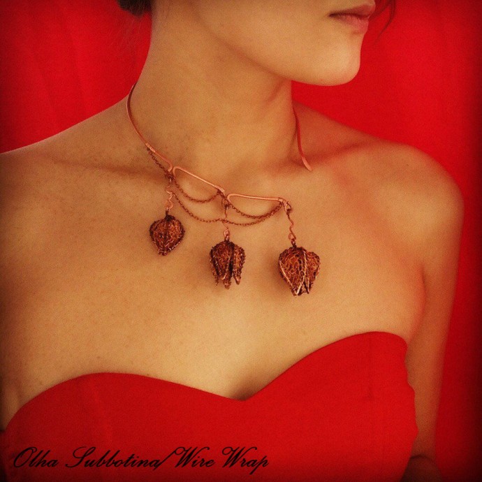 Процесс создания физалисов из медной проволоки Автор Olha Subbotina Первые физалисы были сделаны мной уже давно, но поделиться с вами процессом их создания время появилось только сейчас. Я надеюсь этот мастер-класс будет интересен как состоявшимся мастерам, так и просто ценителям прекрасного Итак, для начала работы мне потребовалась медная проволока диаметром 1 мм, 0,5 мм и 0,35 мм, медные бусины разных диаметров, яркие бусины для сердцевины (в моем случае цитрин) диаметром 8 мм, круглогубцы, узкогубцы ...