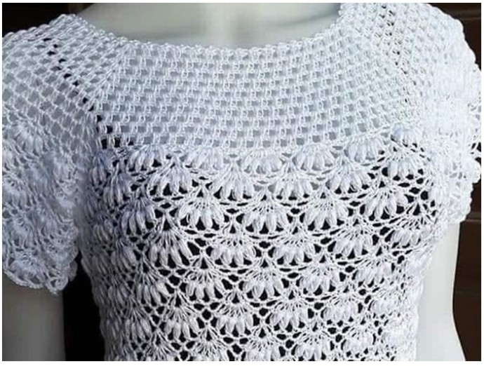 Стильный и легкий летний джемпер-поло Выполнен с крупной ажурной вязкой, которая равномерно покрывает все детали изделия.Модель свободного кроя с прямыми линиями переда и спинки. Горловина имеет неглубокий V-образный вырез, оформленный планкой. Рукава немного длиннее локтя. Особым акцентом служит накладной карман на груди, который добавляет не только стиль, но и практичность. Такая модель будет отлично смотреться из льняной пряжи или с добавлением льна. Ажурный узор в виде крупных дырочек выполнен из ч...