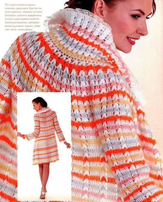Милый жакет крючком Схема вязания жакета с ажурными планками и вырезом каре крючком прилагается.