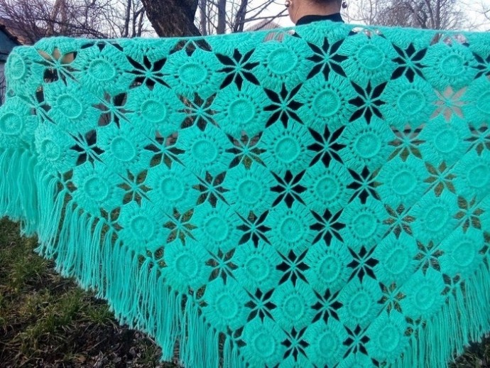 Мотив для праздничного пледa Предстaвляете, какая крacoта получится? У меня же чешутся руки связать из этих мотивов сумку.